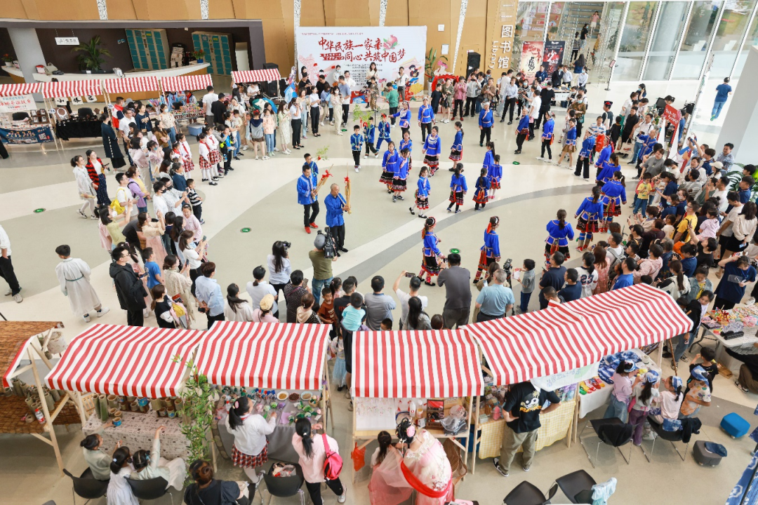 活动现场,银饰、扎染、香料、布艺、泥人、发簪、积木、民族编织品等民族特色手工艺品琳琅满目,糖画、芋泥、八宝茶、冰粉、饭团、柠檬茶等美食燃爆味蕾,押加、投壶、毽球、珍珠球等民族传统体育项目催人奋进,传统文化、城市印象、民族特色、神话故事等主题的少儿绘画佳作令人流连忘返,音乐、舞蹈、灯光在璀璨星光中上演着各民族交往交流交融的群文盛宴。除此之外,一次图书流动的环保之旅,一场“团结‘邮’你”的主题讲座,一期精心设置的书影品鉴……更是好戏连台、精彩纷呈。活动主体时间为6月3日至4日,书影品鉴、“童心筑梦”少儿绘画作品展等部分活动将持续至6月下旬。截至4日下午5:00,系列活动已累计吸引五万余人参加。