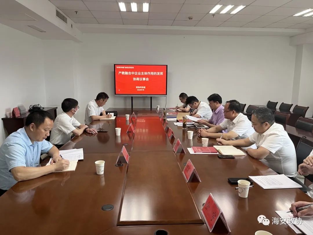 丁兴育指出,深化产教融合是一项重大政治任务。近年来,海安企业与市内各职业院校不断深化校企合作,为海安产业发展培养了大量的高素质产业工人,取得了一定成绩。但在产教融合推进过程中还有不少需要改进的地方,需加强政府引导,推动多方力量结合,进一步提升企业在产教融合中的主体地位,助力海安高质量发展。