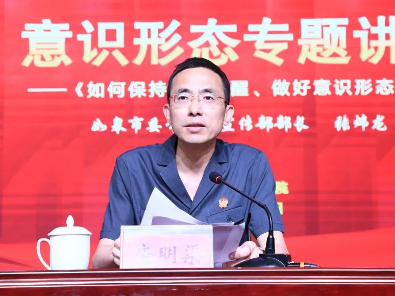 张炜龙部长以《如何保持思想清醒、做好意识形态工作》为主题,围绕意识形态的内涵和外延、意识形态工作是党的一项极端重要的工作、我国意识形态领域的现状、我市意识形态工作存在的薄弱环节和如何做好意识形态工作等五个方面进行分析和讲解,并就新形势下做好意识形态工作提出要求。