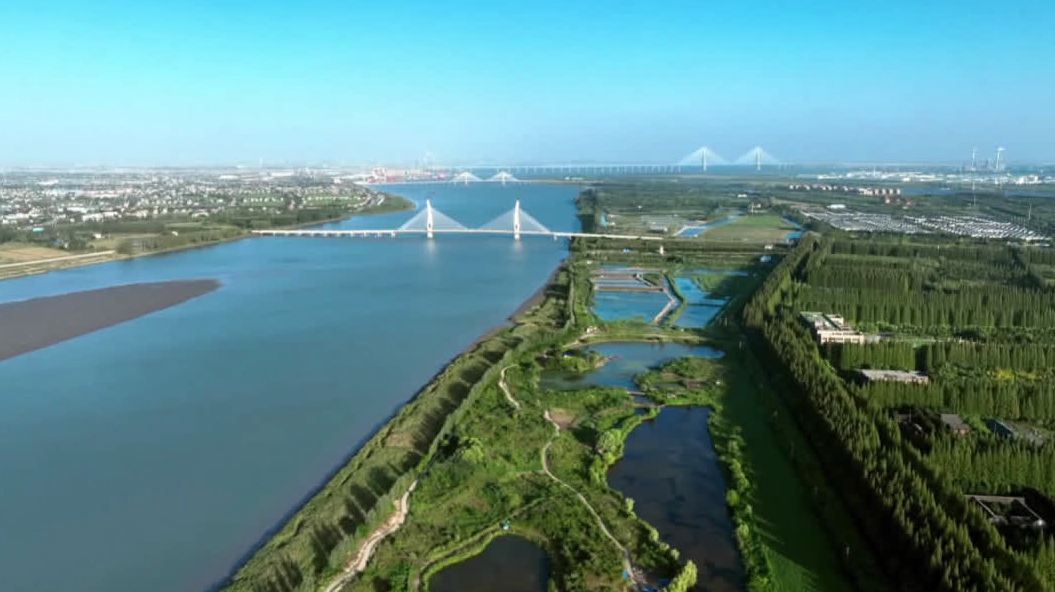 △ 生机勃勃的防护林与万里长江、跨江大桥相映成景。