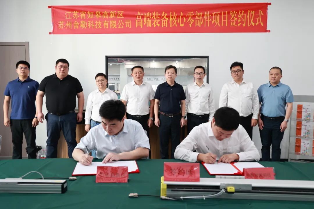 9月7日上午,高端装备核心零部件项目签约仪式在苏州舍勒智能科技有限公司举行。如皋市委常委、市政府副市长,如皋高新区党工委书记陈鸣华出席仪式并见证签约。高新区党工委副书记,如城街道党工委书记、城南街道党工委书记储开平;区招商条线、园区及部门相关负责人;苏州舍勒智能科技有限公司相关负责同志参加活动。