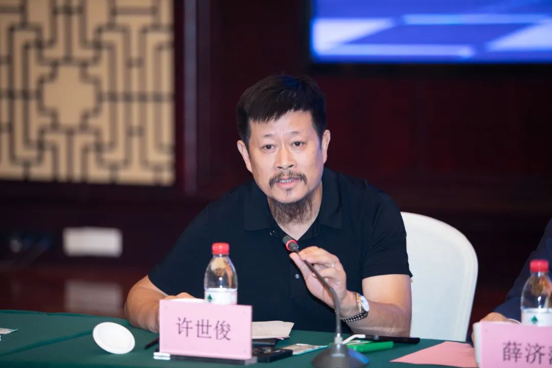 ▲县企业家协会常务副理事长、江苏海力风电设备科技股份有限公司董事长许世俊主持会议