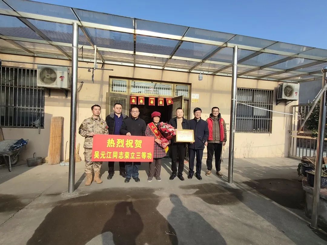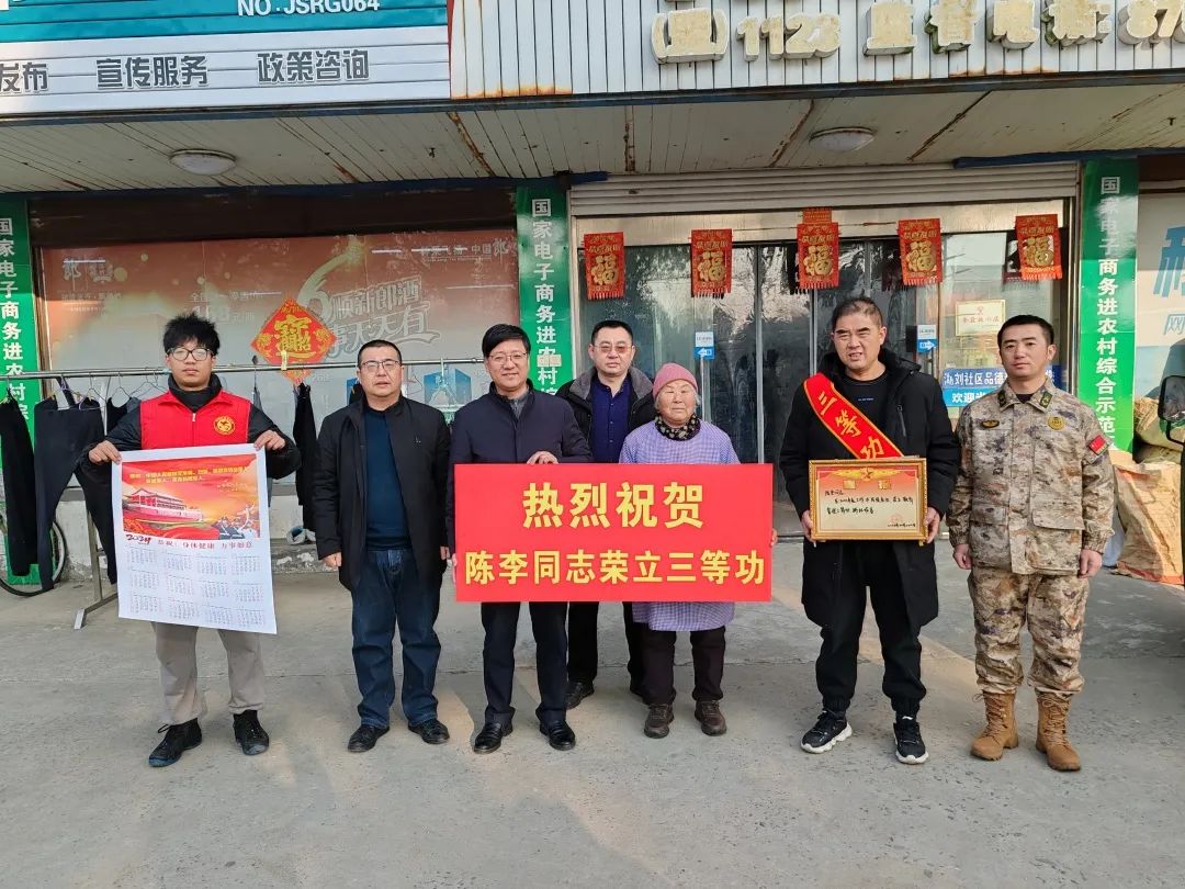 近日,如皋市政府副市长黄文斌、市人武部政委李向阳、市退役军人事务局局长陈晓华、搬经镇镇长张妍等相关部门负责人,共赴搬经镇联合开展为立功军人家庭上门送喜报活动。