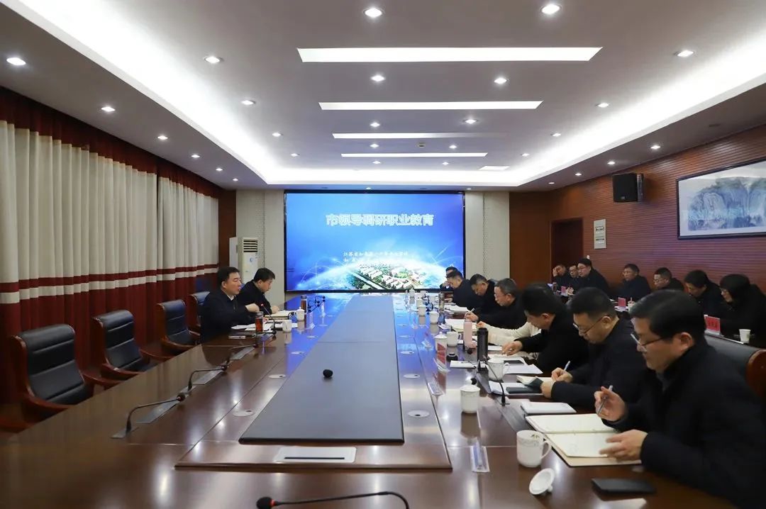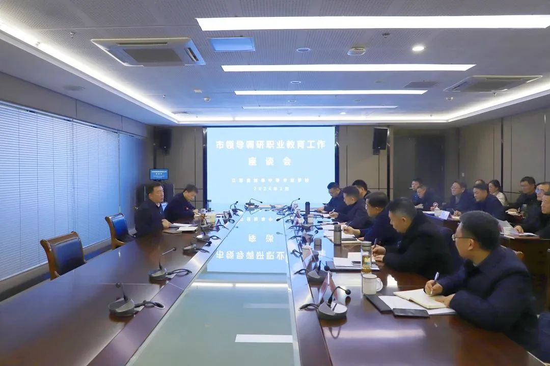 在江苏省如皋中等专业学校,何益军听取了该校校长贾建军关于办学内涵、专业建设、师资队伍、基础设施、创建分院等方面的汇报,并详细了解了学校下一步办学方向。何益军强调: