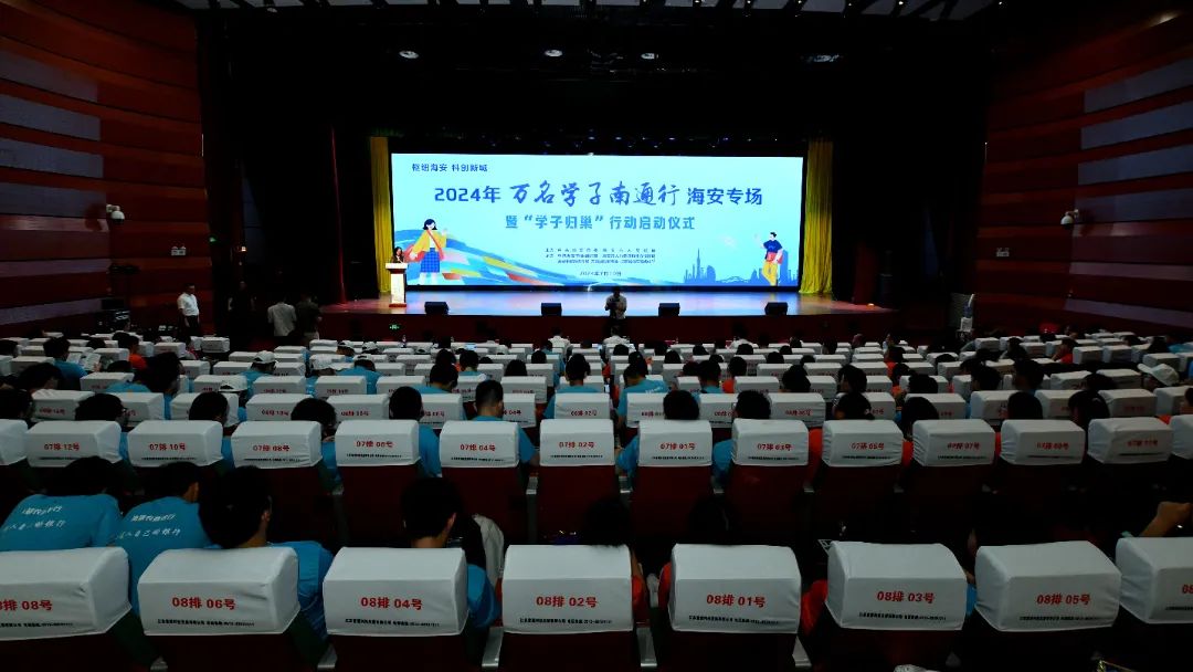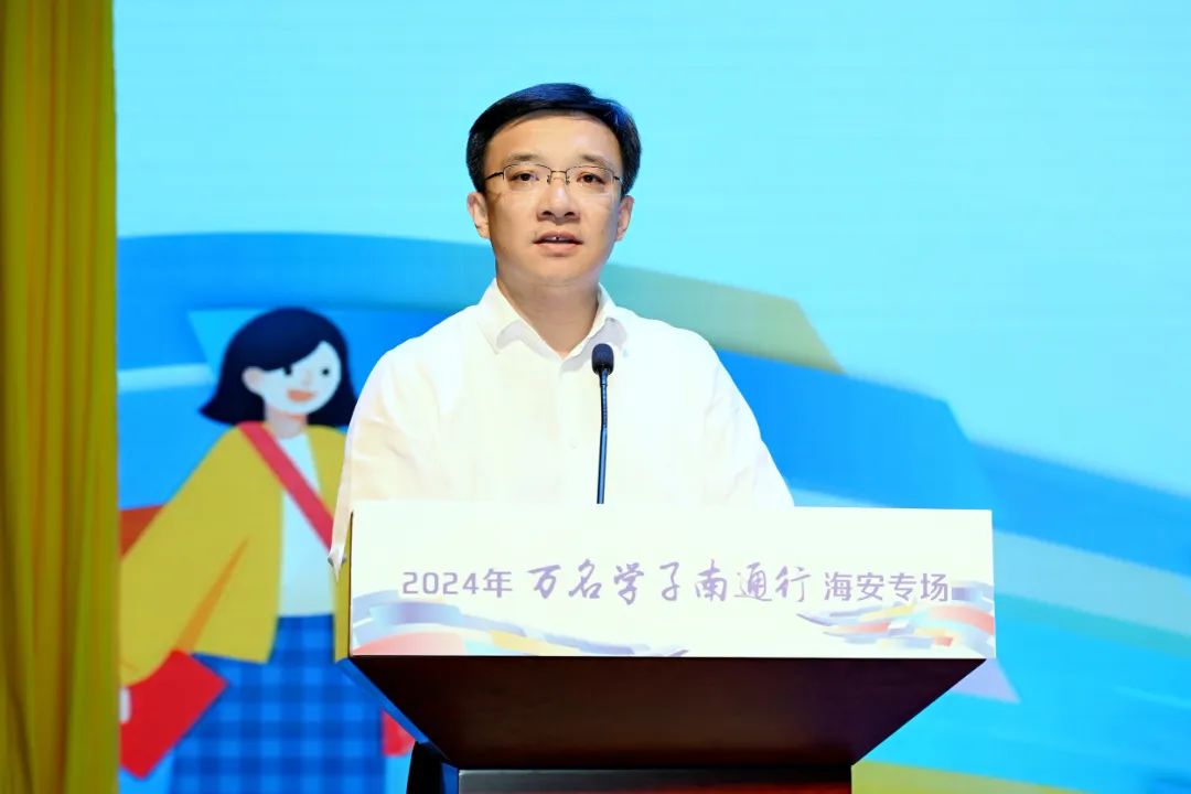 7月10日,2024年“万名学子南通行”海安专场暨“学子归巢”行动启动仪式在海安中学博雅剧场举行,市委常委、常务副市长王巧荣,市委常委、组织部部长、统战部部长钱旭东,副市长侯艳秋,海安中学党委书记、校长董裕华,市人社局党组书记、局长王晨,市委教育工委书记、市教育体育局党组书记、局长周树群,共青团海安市委书记范鼎等出席活动。