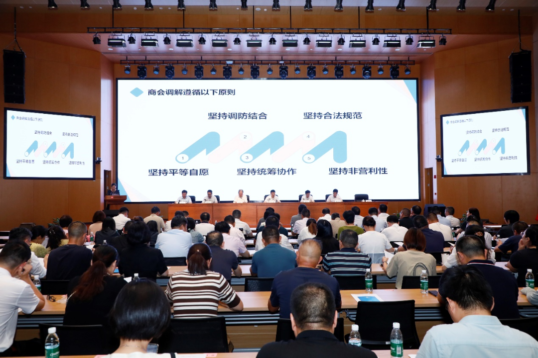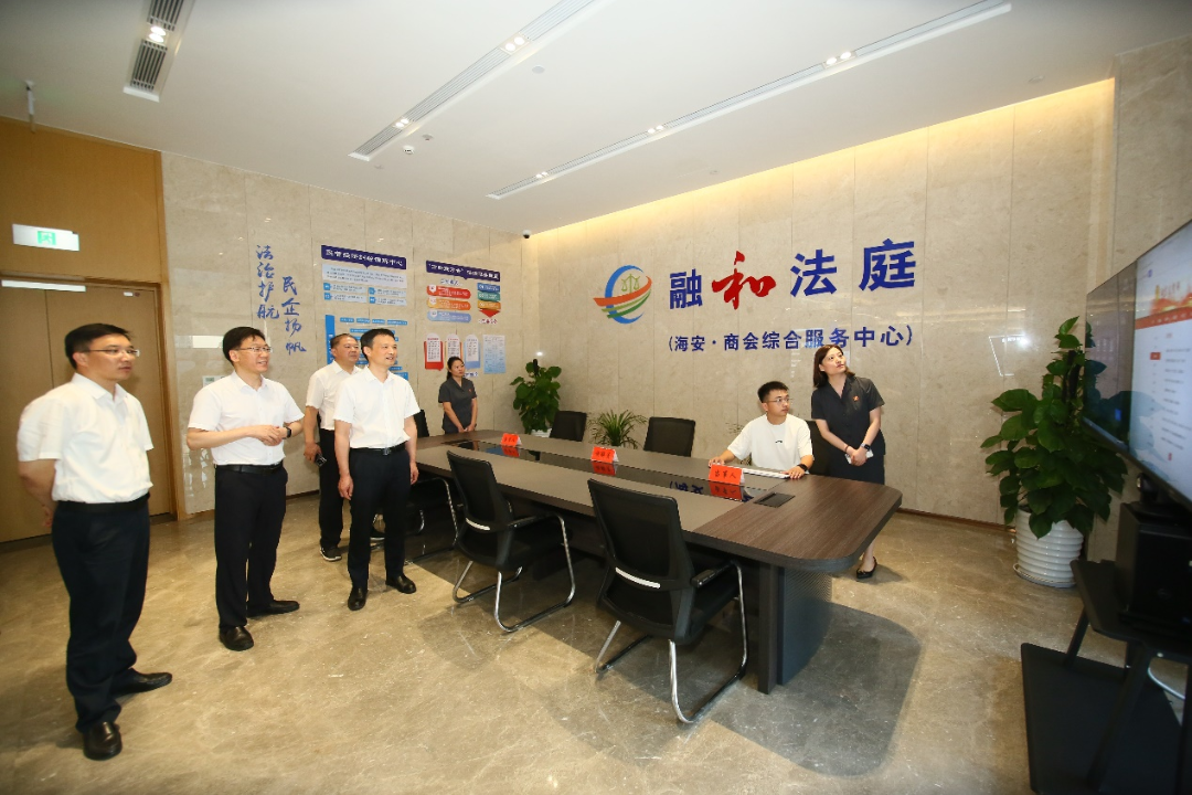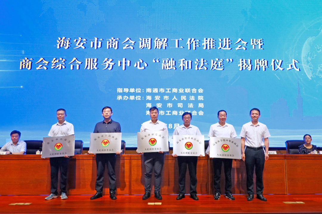 8月14日,海安市商会调解工作推进会暨商会综合服务中心“融和法庭”揭牌仪式在商会综合服务中心圆满举行。南通市工商联党组成员、副主席陆志祥,南通市工商联法律服务部部长陈星杰,海安市委常委、组织部部长、统战部部长钱旭东,市人民法院党组书记、院长秦昌东,市委统战部常务副部长、工商联党组书记黄婧婧,市司法局党组书记、局长谢志军,法院专(兼)职调解员及相关庭室负责人,区镇统战委员、司法所长,市总商会人民调解委员会成员、指导员,基层商会会长、调解员,企业家和律师代表等参加活动。市人大常委会副主任、工商联主席赵剑波主持会议。