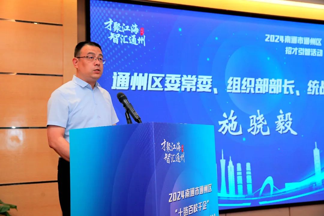 8月30日,2024南通市通州区“十链百校千企”招才引智活动走进“南国明珠”广州,靶向延揽高端人才,深入对接优质项目。区委常委、组织部部长、统战部部长施骁毅,广东省江苏商会会长冯树君出席活动并致辞。
