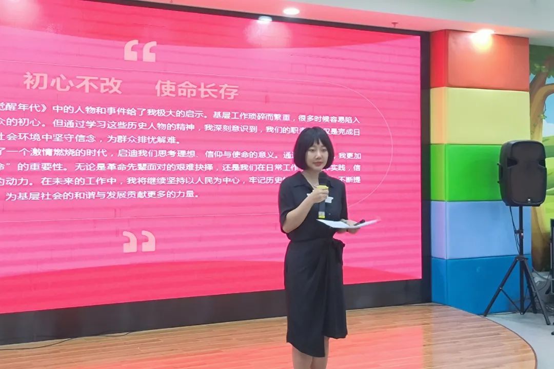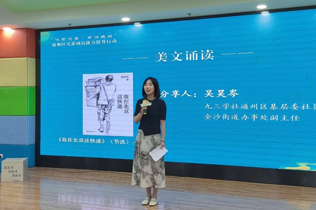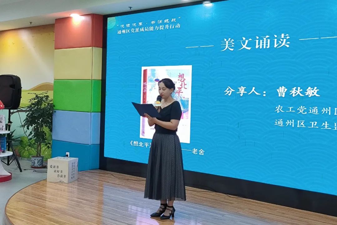 分享演说环节,民建通州区支部会员、平潮镇人民政府经济发展局科员王骁骁,区知联会理事、区供销总社财务审计科副科长张铮分别以《青年不坠青云志 扎根基层花满园》《初心不改 使命长存》为题,结合自身工作实际和生活体验,畅谈读书收获,分享成长故事,充分展现了民主党派和统战团体成员求知求新、奋发有为的精神风貌。