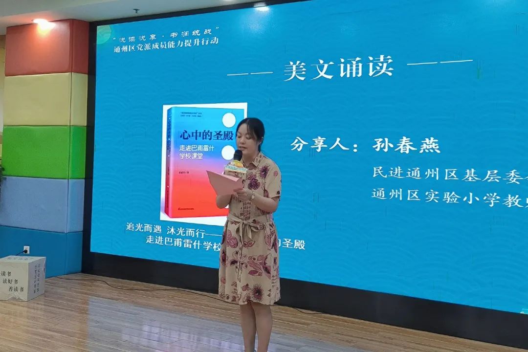 为庆祝中华人民共和国成立75周年,深入学习贯彻党的二十届三中全会精神,9月2日,通州区委统战部举行“悦读悦享·书润统战”党派成员能力提升行动第二场活动。区委常委、统战部部长、组织部部长施骁毅出席活动。