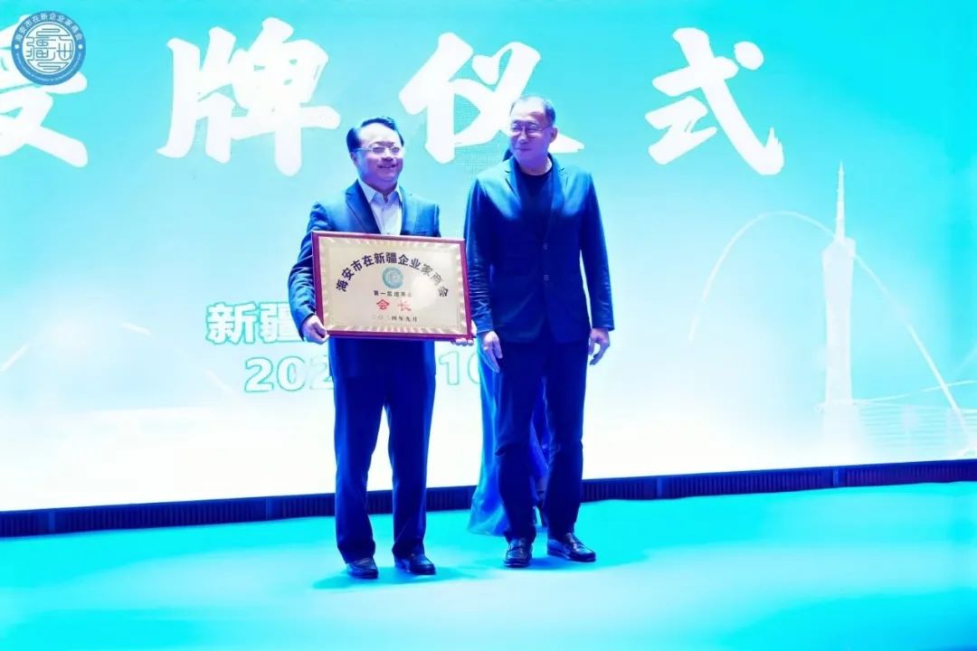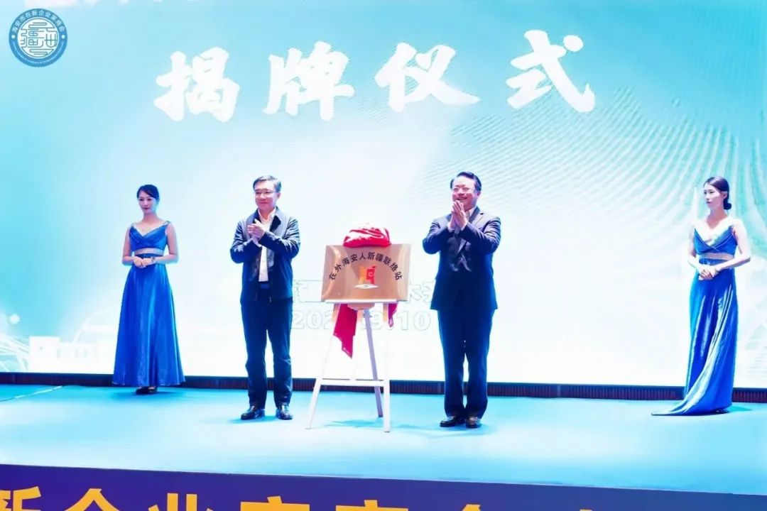 钱旭东、陈志才为“在外海安人新疆联络站”揭牌。