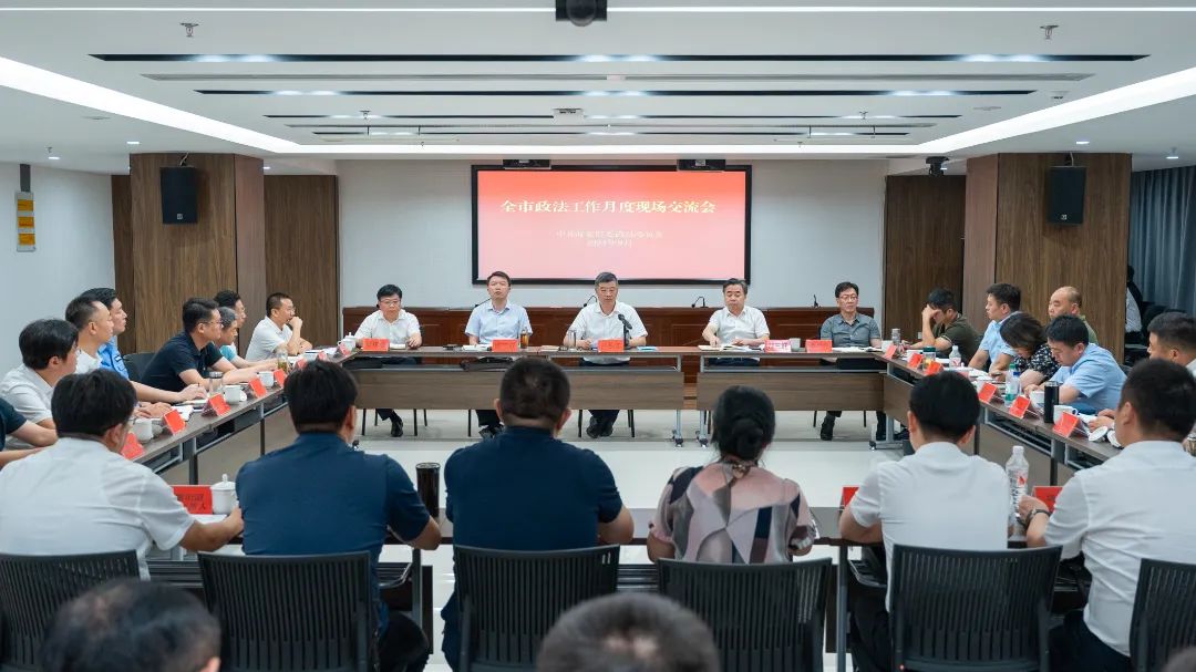 政法委、司法局、信访局、社会治理中心相关负责人对区镇街道前期工作进行点评。各区镇街道分管负责人汇报交流前期社会稳定、平安法治建设、创新工作、政法宣传工作情况。