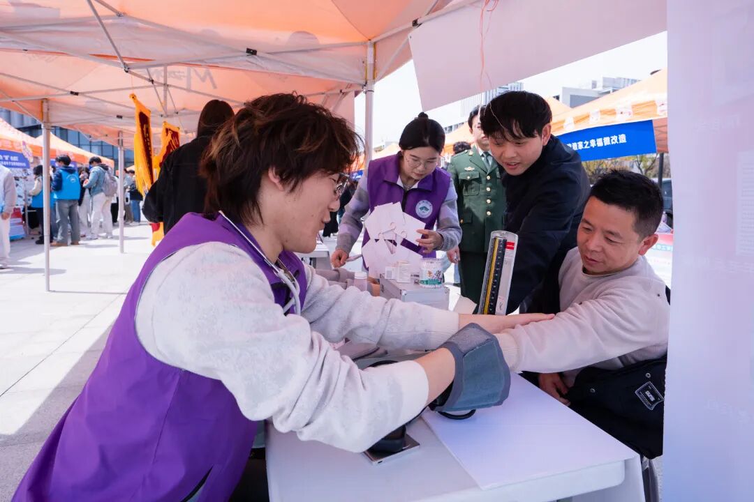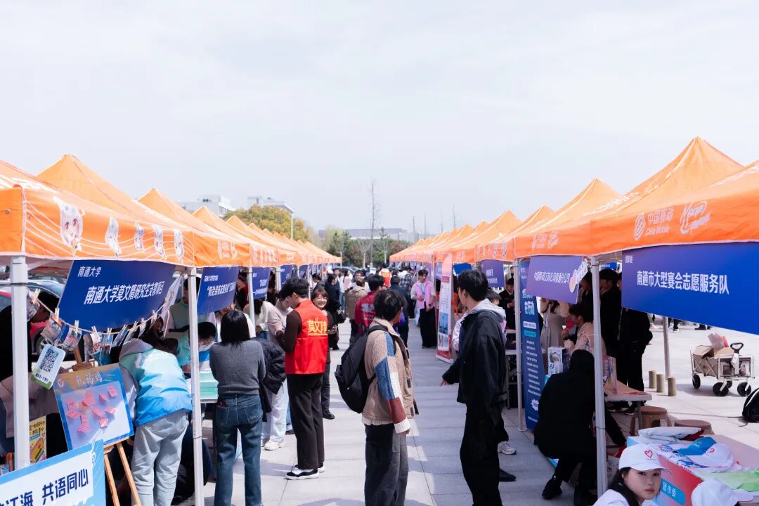 中午,青年志愿服务市集在南通大学艺术中心剧场外围火热开展。30 个特色志愿服务摊位整齐排布,各高校优秀志愿服务项目集中亮相,涵盖乡村振兴、为老服务、关爱少年儿童、阳光助残、环境保护、文明实践、卫生健康等多个主题,青年志愿者以展板展示、现场讲解、游戏互动等形式,呈现了南通青年以志愿服务参与基层社会治理的鲜活场景。