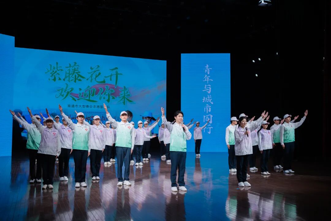 时值仲春,濠南别业前,张謇先生手植的百年双色紫藤,正含苞待放。它是独属南通的春日限定,“小紫藤”青年志愿者,也因此得名。他们根植于江海沃土,用无私奉献与热情服务诠释着这座城市的“青春限定”。2025 年,团市委圆满完成了“苏超”联赛南通 8 个主场赛事的服务保障任务,累计招募“小紫藤”志愿者 1511 人次,服务时长超 3.5 万小时。