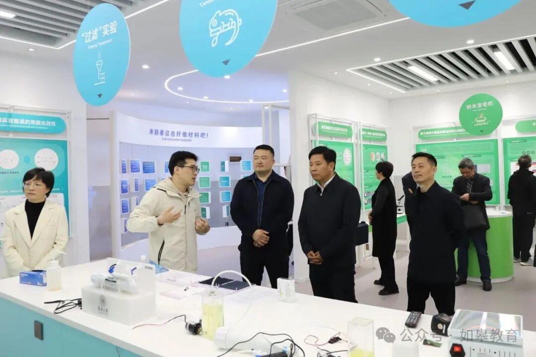 教育界别组实地考察了我校科技特色建设情况。顾留忠一行走进由我校杰出校友、中国科学院院士朱美芳打造的纤维材料科学体验馆,近距离观摩前沿纤维材料科研成果,体验互动科普设施,深入了解展馆科普育人建设情况,对展馆依托科研资源赋能学生成长、厚植科创理想与科研报国情怀的育人成效给予了高度肯定。